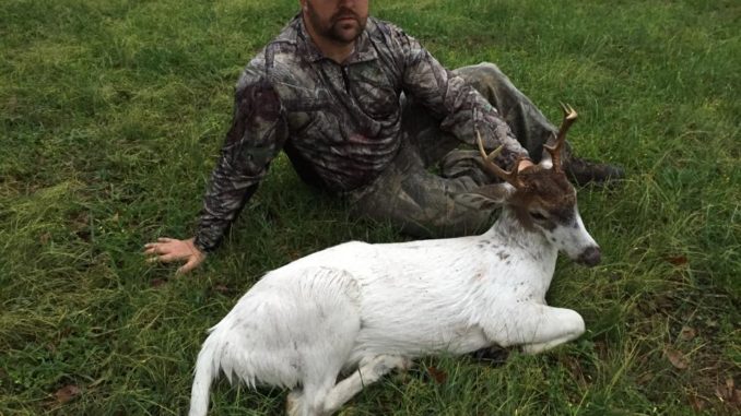 Shane Copeland killed a trophy of another kind with this piebald Abbeville County buck.