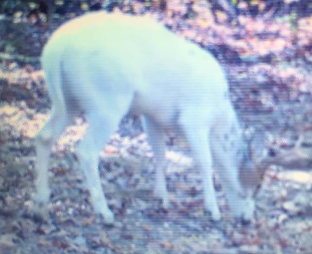 “Earlier in the season, some other hunters were talking about seeing a small white deer, but that was about 6- or 8-miles from my property. Then about three weeks ago, the deer started showing up on our trail-cams. My cousin saw it while hunting once, but didn’t take a shot at it,” said Copeland.