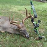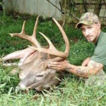 Barley watched the 100 grain Ramcat broadhead make contact, but he thought it looked a little high. After waiting in the stand for 20 minutes, he climbed down, checked for blood and found some right away. After tracking the deer for about 150 yards, Barley and his friend Daniel Clarida were both surprised to see just how big the deer, and the rack were.