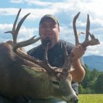A ridge-top field bordered on one side by a pine thicket and an overgrown weed field on the other was where he used a .50-caliber muzzleloader to drill a mainframe 4×4 buck with 14 total points that scored 1764/8 gross and 152 1/8 net inches last Nov. 13, 2015. Deer used the tightly-bunched pines as a bedding area.