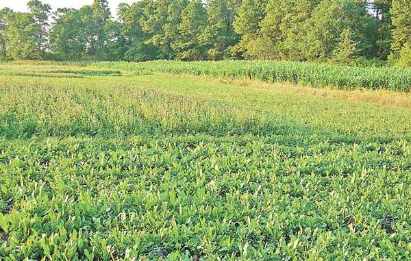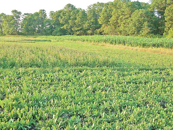 Cooke sometimes ties pie plates on small tree branches along the edges of fields to scare deer away, or he will erect an old-fashioned scarecrow in blue jeans and red-checkered shirt with a bar of Irish Spring in one of the pockets. These homemade deterrents are inexpensive, but highly-effective for keeping deer off the plots during the critical first month of growth. When the deterrents are removed, deer will quickly move into the plots to feed aggressively. At this point, the plots will be well established and capable of heavy browsing.