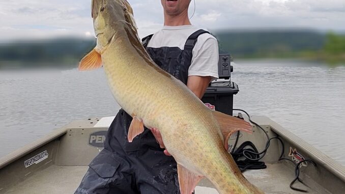 49.25″x23″ muskellunge (musky) caught and released by angler Isaac Wheeler in North Carolina